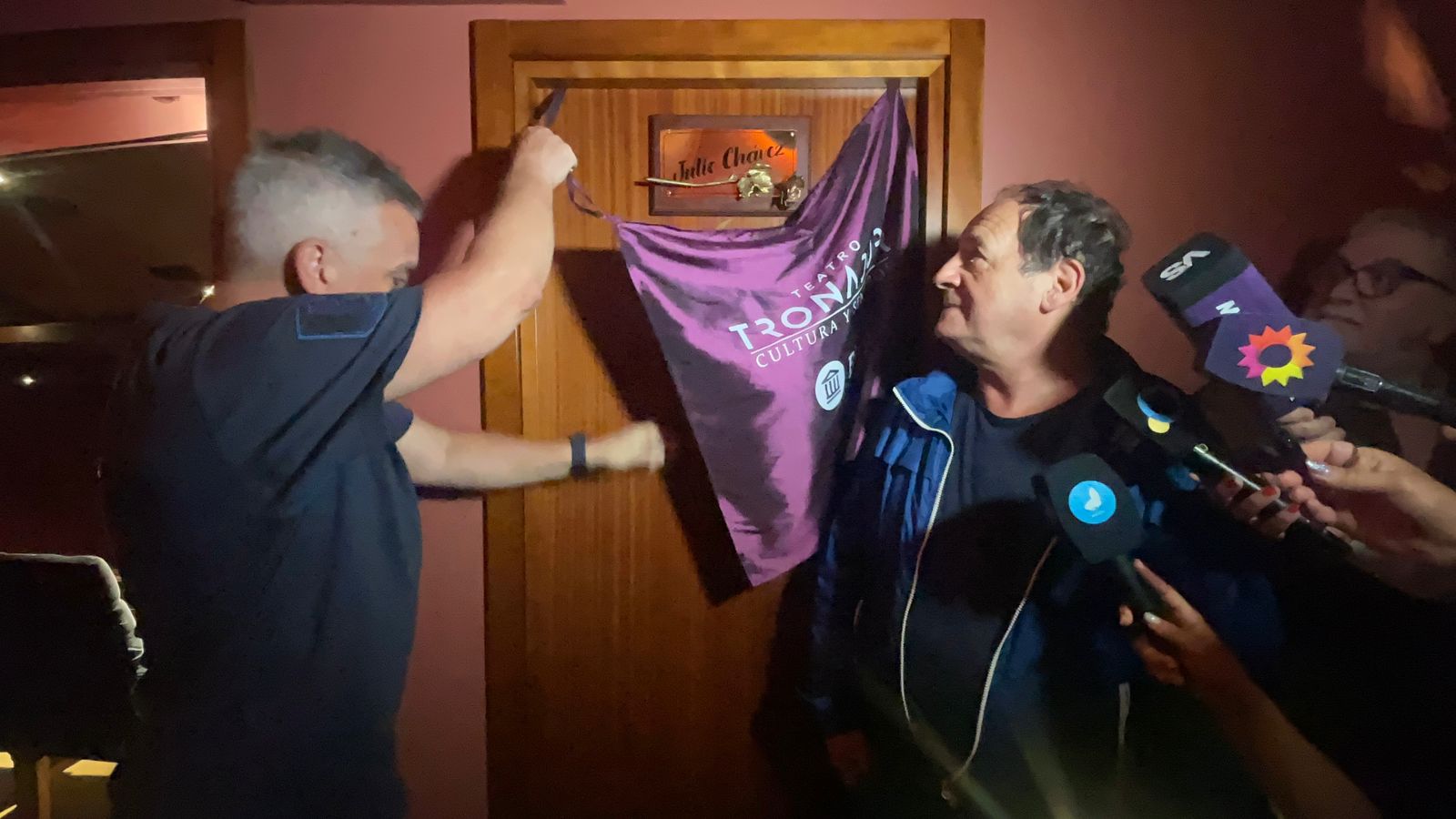 Julio Chávez fue homenajeado este viernes por iniciativa de Marcelo González en el Teatro Tronador BNA – donde se encuentra actualmente protagonizando “La Ballena – mediante el bautismo de uno de los palcos de esta emblemática sala con su nombre.