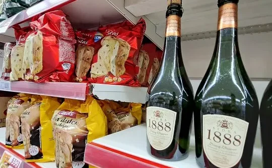 Por otro lado, también hubo aumentos en el rubro alimenticio: encabezan las subas la torta española de frutos secos (+47%), el pan dulce con frutas (+44%) y el turrón blando de almendra (+38%), mientras que el pan dulce con chips de chocolate (+9%), las garrapiñadas de maní (+7%) y el champagne (+1%) figuran entre los que menos variación tuvieron. En conjunto, el valor promedio de los 12 productos relevados pasó de $75.013 en 2024 a $95.401 en 2025.