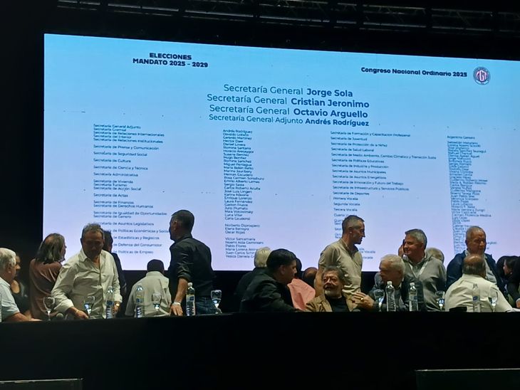 La Confederación General del Trabajo (CGT) renovó este miércoles su conducción por los próximos cuatro años durante el congreso realizado en el estadio de Obras Sanitarias. En esa instancia, fue elegido un nuevo triunvirato integrado por Jorge Sola, del gremio del Seguro; Cristian Jerónimo, del Sindicato de Empleados del Vidrio (SEIVARA); y Octavio Argüello, representante de Camioneros.
