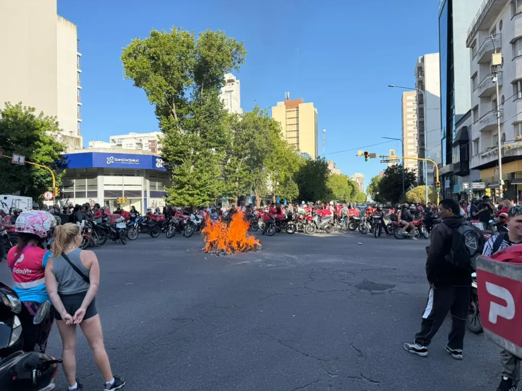 Repartidores autoconvocados realizaron una caravana a bordo de sus motos que culminó en Luro e Independencia con un masivo pedido de seguridad.