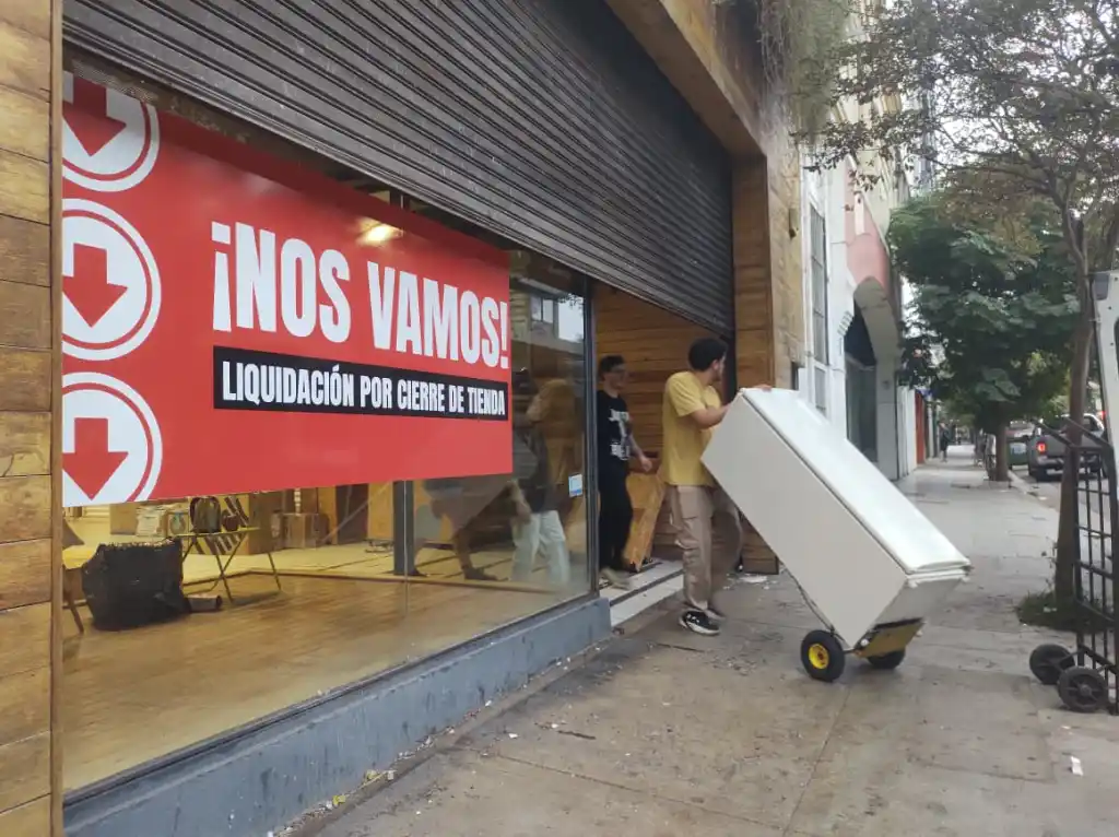 Entran y salen con la persiana a media asta. Tienen que cargar varios muebles a un camión de mudanza, que los espera en la puerta. Están enRivadavia casi Catamarca y desarman un local inmenso, con un imponente jardín vertical, en el que por años funcionó una reconocida blanquería y textil del hogar. El plotter del vidrio lo explica todo:“Nos vamos”.