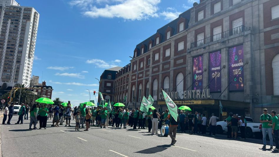 Los trabajadores del Casino de Mar del Plata, pertenecientes al área de maestranza y servicios, realizaron este martes por la mañana una protesta frente al edificio del Casino, sobre la intersección de Belgrano y la costa, para visibilizar una serie de reclamos vinculados principalmente a la recomposición salarial y a la crisis que atraviesa la actividad.