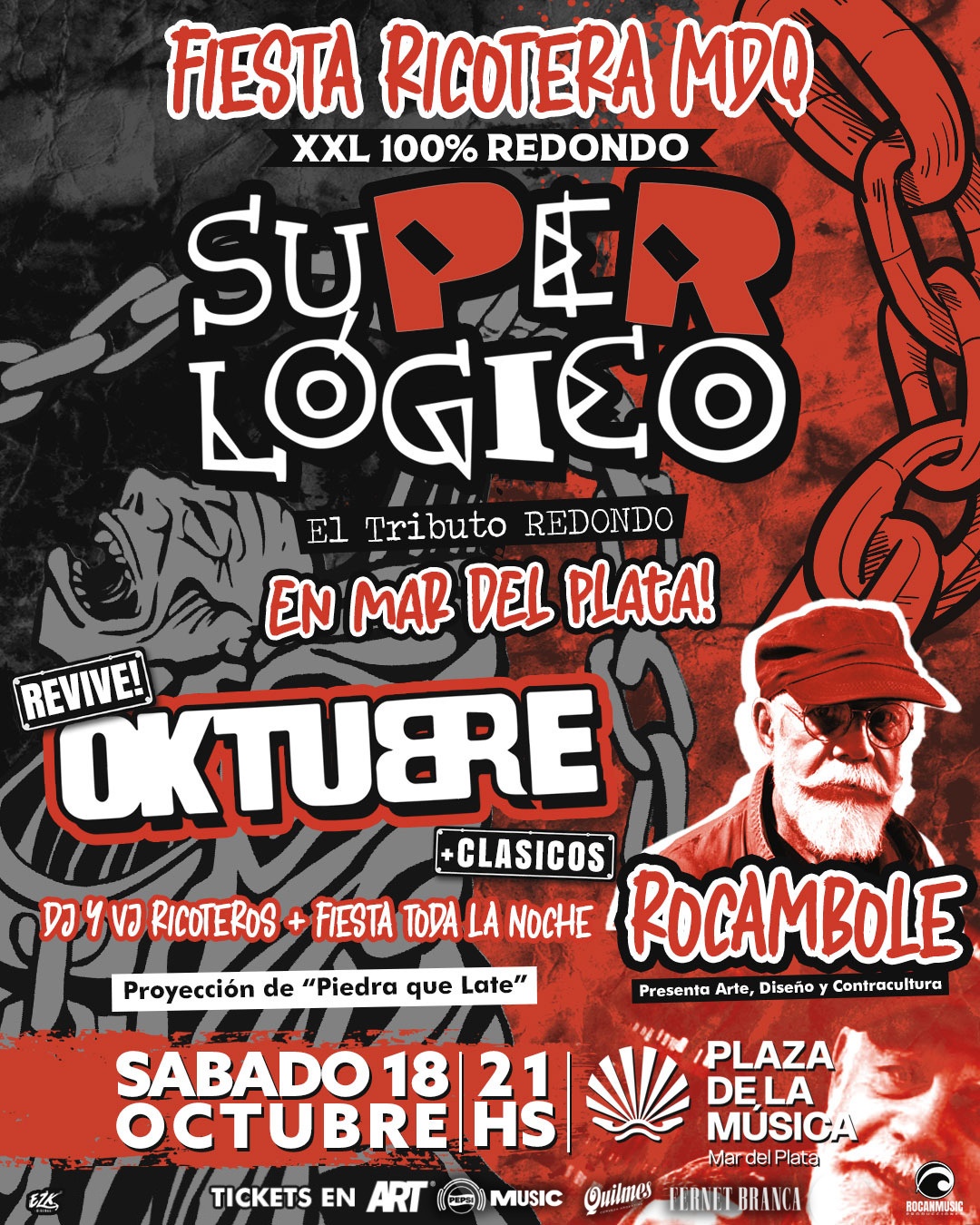 El sábado 18 de Octubre – 21hs – SUPERLÓGICO, la banda que rinde homenaje a Patricio Rey y sus Redonditos de Ricota se presentará en una noche única en la Plaza de la Música.
